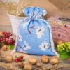 1 ks Pytlík z imitovaného lnu s potiskem 18 x 24 cm -přírodní / modré květy