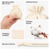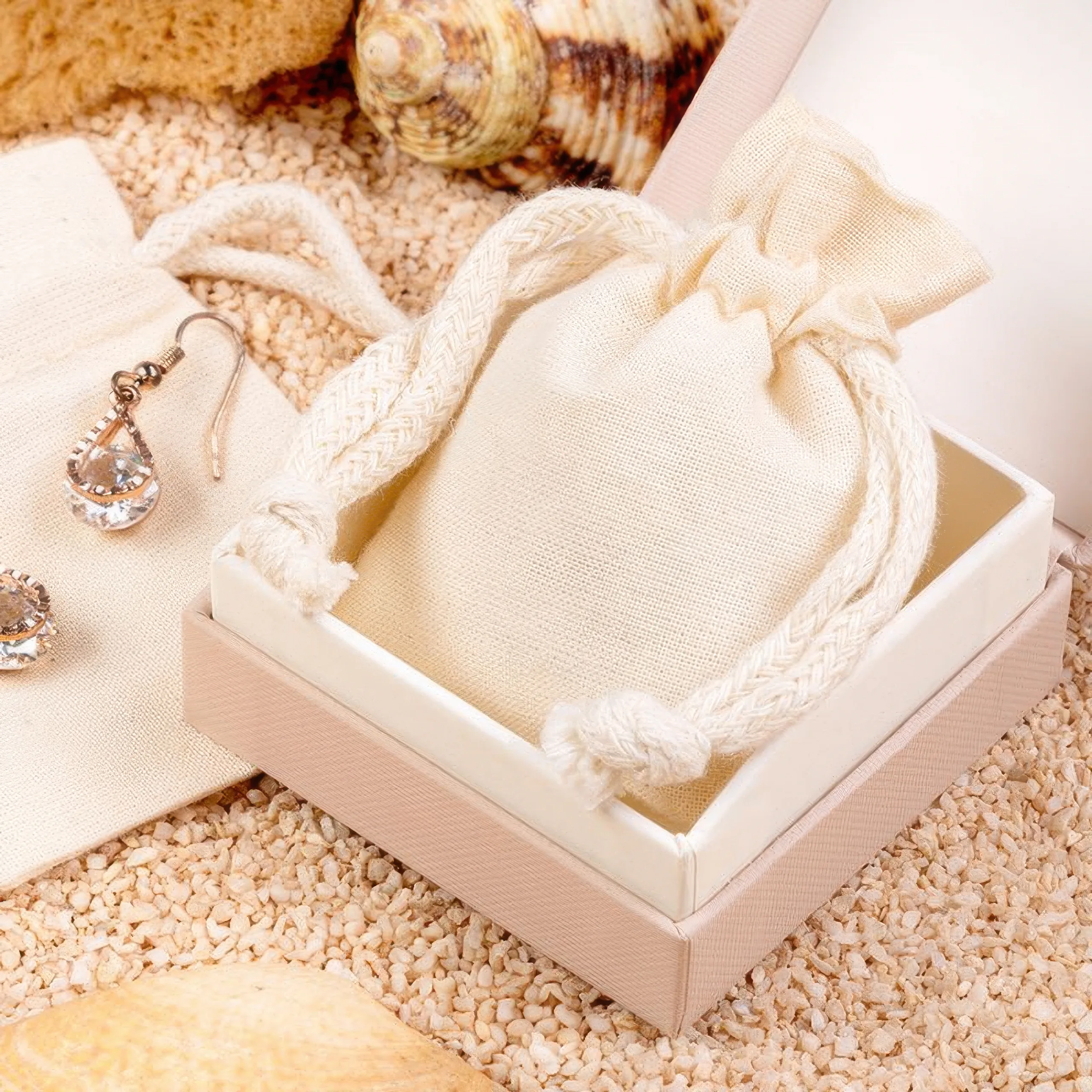 Sáčky jsou ušity z 100% bavlněné tkaniny, která je prodyšná, příjemná na dotek a dostatečně odolná pro každodenní používání. Jemná struktura povrchu a přírodní odstín působí nenápadně a snadno se kombinuje s různými styly balení - od jednoduchých dárkových setů až po minimalistickou prezentaci produktů.