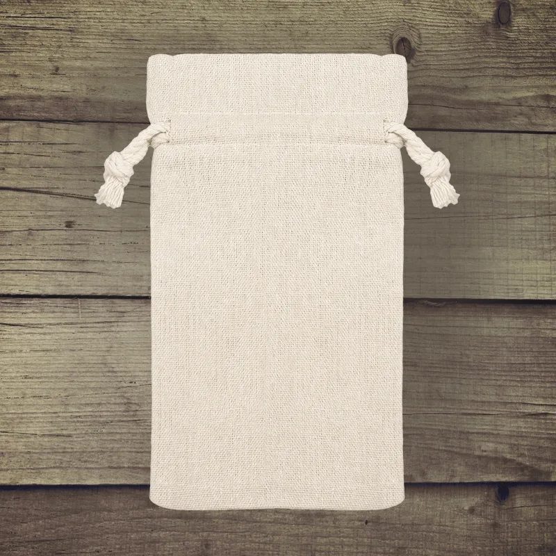Tyto pytlíky z imitovaného lnu mají strukturu připomínající přírodní len, ale díky kombinaci bavlny a syntetických vláken drží tvar a dobře se s nimi pracuje při balení produktů. Povrch je příjemný na dotek a jemná textura dodává balení přirozený a upravený vzhled.