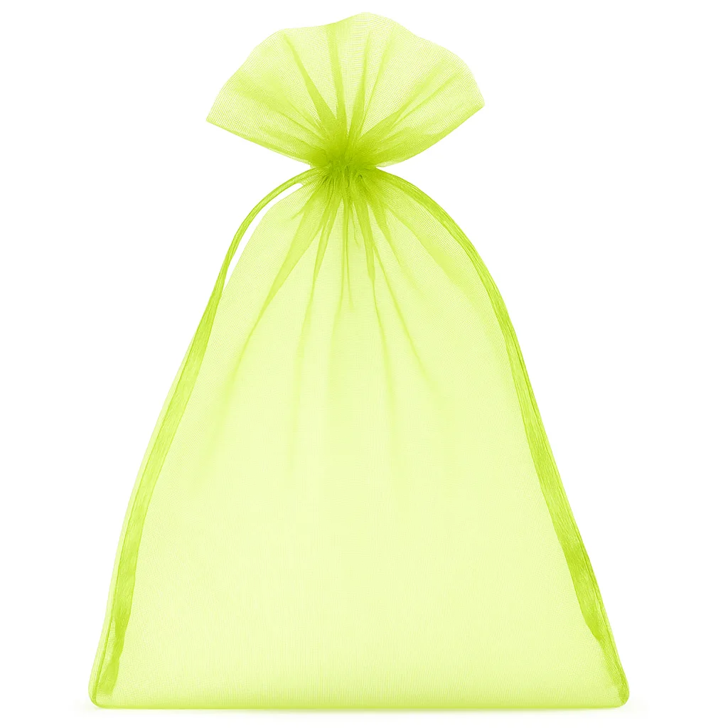 Sada 5 kusù velkých sáčků z organzy 26 x 35 cm s zelené barvou.