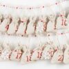 Soubor tvořící adventní kalendář se skládá z 24 kusů sáčků z imitovaného lnu v přirozených barvách, s rozměry 10 x 13 cm. Každý sáček má červený potisk zobrazující různá čísla od 1 do 24. Balíček také obsahuje: girlandu v červené barvě, 5 kusů bílých ozdobných přívěsků zobrazujících vločky a jutový šňůrek pro zavěšení kalendáře na zeď, např. nad krbem.