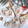 Adventní kalendář, 24 ks Pytlík z imitovaného lnu 10 x 13 cm - přirozené