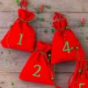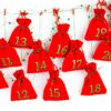 Adventní kalendář, 24 ks sametových sáčků 12 x 15 cm - červená