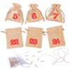 1 ks. Adventní kalendář - jutové pytlíky 12 x 15 cm - světle hnědé + červená čísla