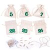 Světlé jutové sáčky v přírodní barvě krásně kontrastují se zelenou plstí, ze které jsou vyrobeny samolepky s čísly. Tato sada Vám umožní připravit jednoduchou a originální dekoraci během několika okamžiků.