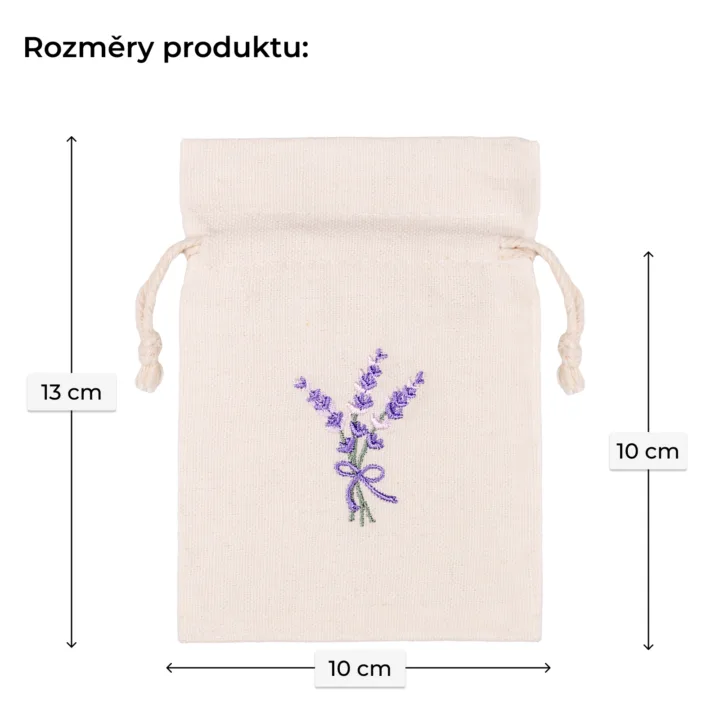 Nejlepší jsou bavlněné sáčky na levanduli 10x13 cm s výšivkou - prodyšné, stylové a připravené k okamžitému použití.