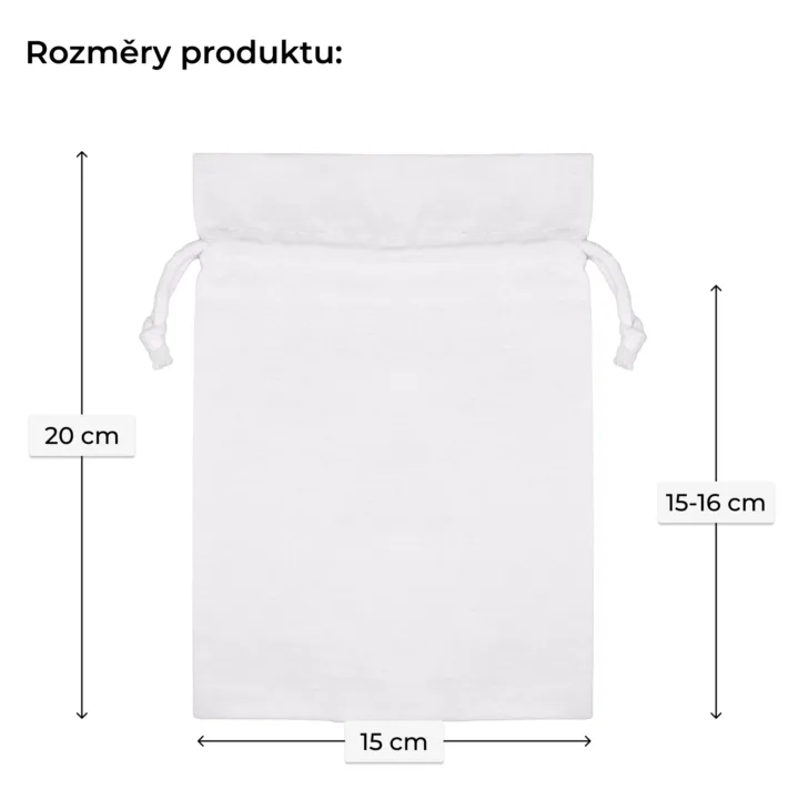 Jedno balení obsahuje 5 bílých bavlněných sáčků.
