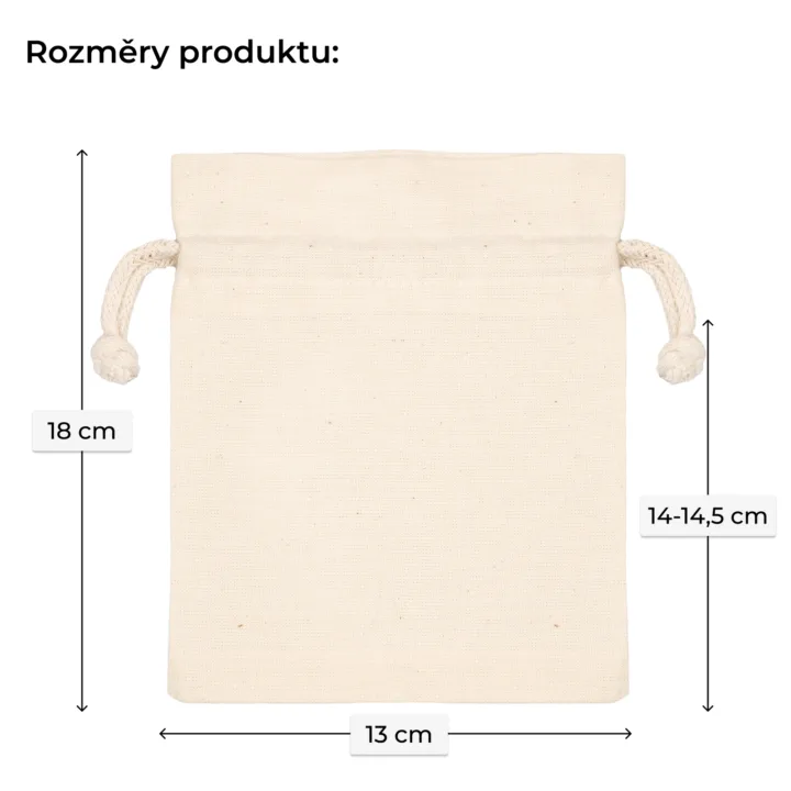 Každý sáček měří 13 cm na šířku a 18 cm na výšku – ideální velikost pro uložení středně velkých předmětů.