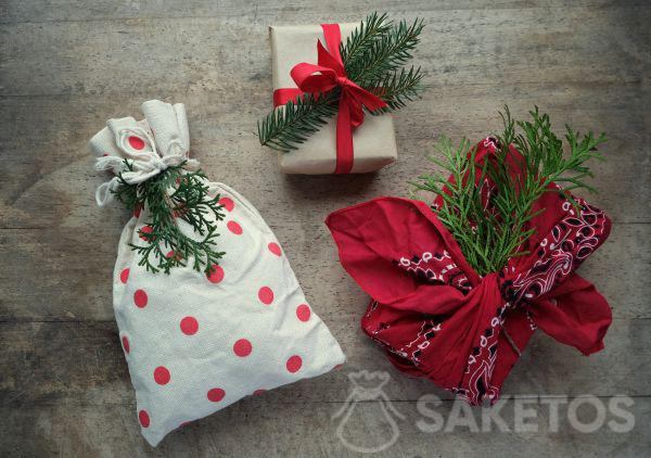 Nápadité DIY balení dárků na Vánoce 3. Pokud se chystáte koupit dárkové balení, kupujte ho s rozmyslem. Vyberte takový, který dlouho vydrží a obdarovaný ho bude moci dlouho používat. Dobrou volbou budou například ozdobné látkové sáčky.
