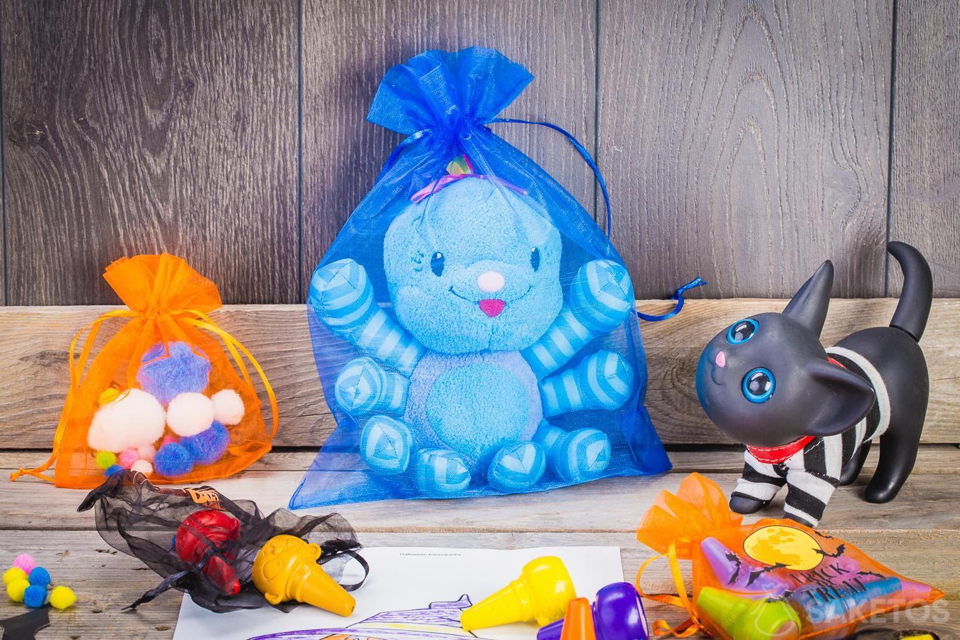 Při přípravě dětského pokoje na Halloween budou velmi užitečné látkové sáčky s ozdobným potiskem. Díky nim můžete snadno ozdobit celý interiér. Je to univerzální a levná dekorace na Halloween. I když se používají především jako obal na bonbóny, jsou skvělé i pro interiérový design.