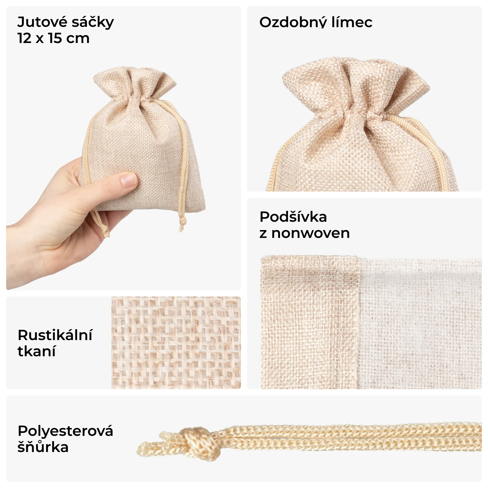 Velmi univerzální kapsy s elegantní juty světlé přirozené barvy ve velikosti 12 x 15 cm. Tato sada sestává z 10 kusů , takže jednorázový nákup sáčků vám vydrží na delší dobu.
