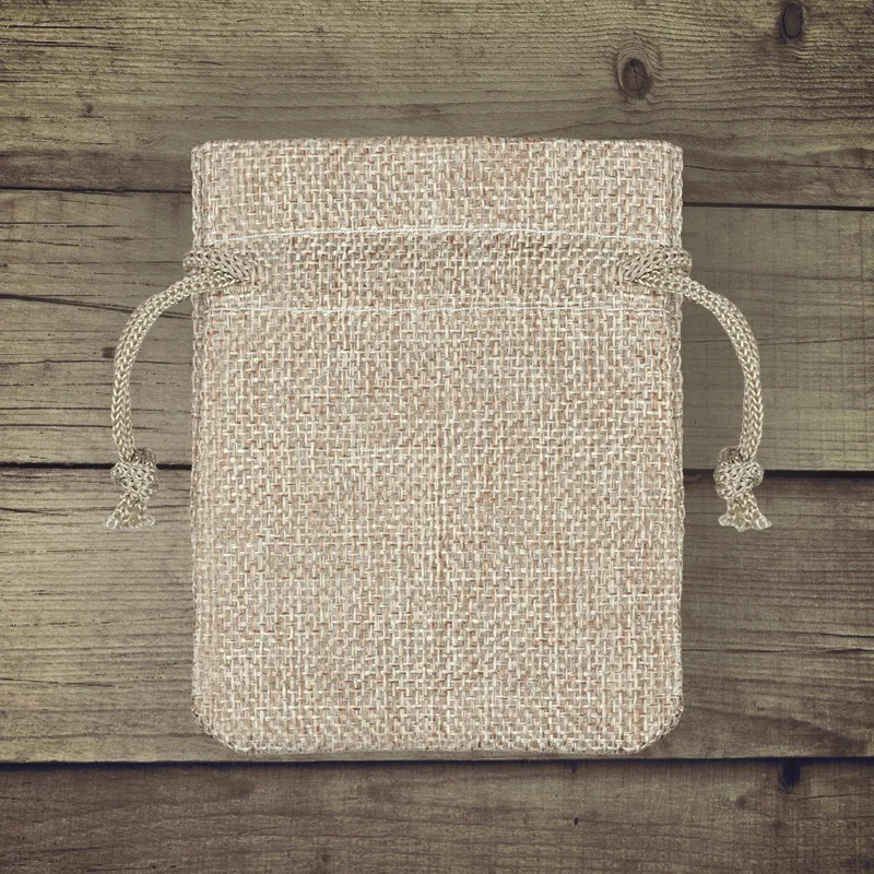 10 ks jutové sáčky 8 x 10 cm přírodní barva s dvojitou stahovací šňůrkou