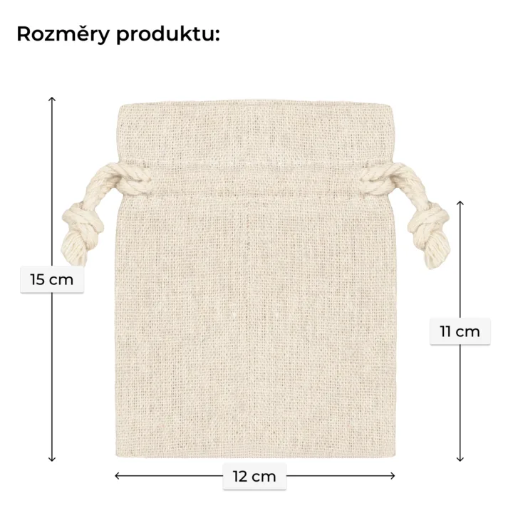 Naše sáčky mají šířku 12 cm a výšku 15 cm. Výška po stahovací šňůrku je přibližně 11 cm.