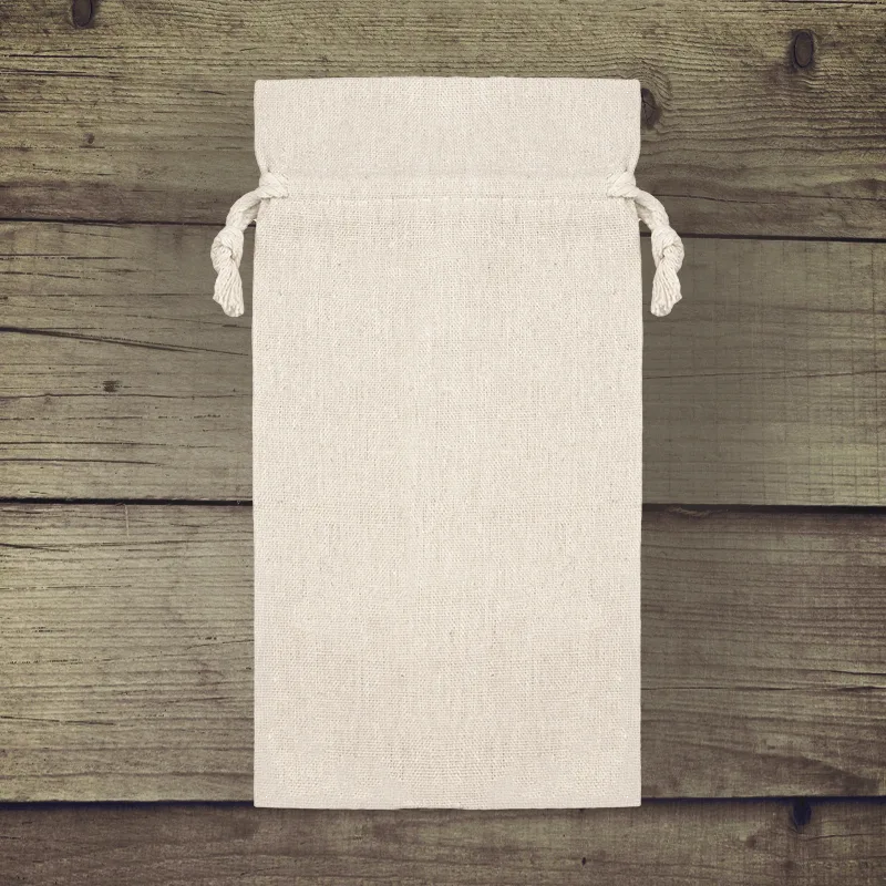 Tyto malé pytlíky jsou ušity ze vzdušné bavlněné tkaniny příjemné na dotek s příměsí syntetických vláken. Tkanina vypadá velmi elegantně, má strukturu a barvu přírodního lnu. Jeho velkou výhodou je nadprůměrná životnost a vysoká odolnost proti stírání a pomačkání. Tyto opakovaně použitelné obaly jsou vynikající volbou!