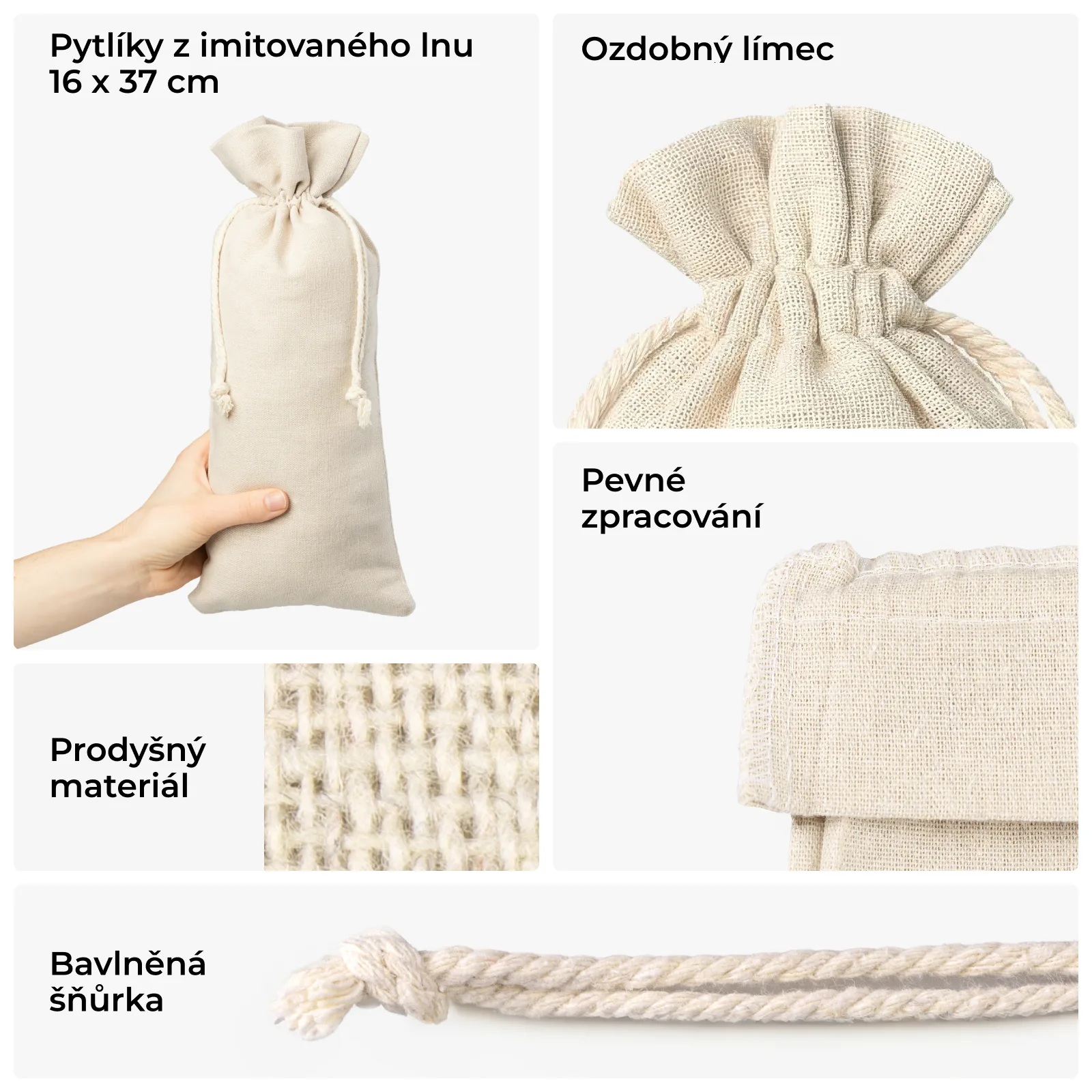 1 ks Pytlík z imitovaného lnu 16 x 37 cm - přirozené