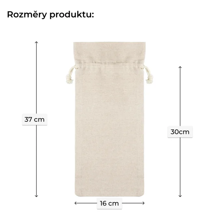 Naše lněné sáčky o rozměrech 16 x 37 cm jsou skvělou volbou pro elegantní obaly na láhve vína nebo alkoholu. Díky přírodnímu vzhledu a možnosti personalizace jsou ideální pro vánoční dárky, které jistě udělají dojem na obdarované. Tyto obaly nejen zdůrazňují ekologický aspekt vaší značky, ale také dodávají prestiž a třídu každému dárku. Ideální pro firemní dárky nebo osobní dárky, naše lněné sáčky s potiskem zajistí, že vaše dárky budou jedinečné a zapadnou do paměti.