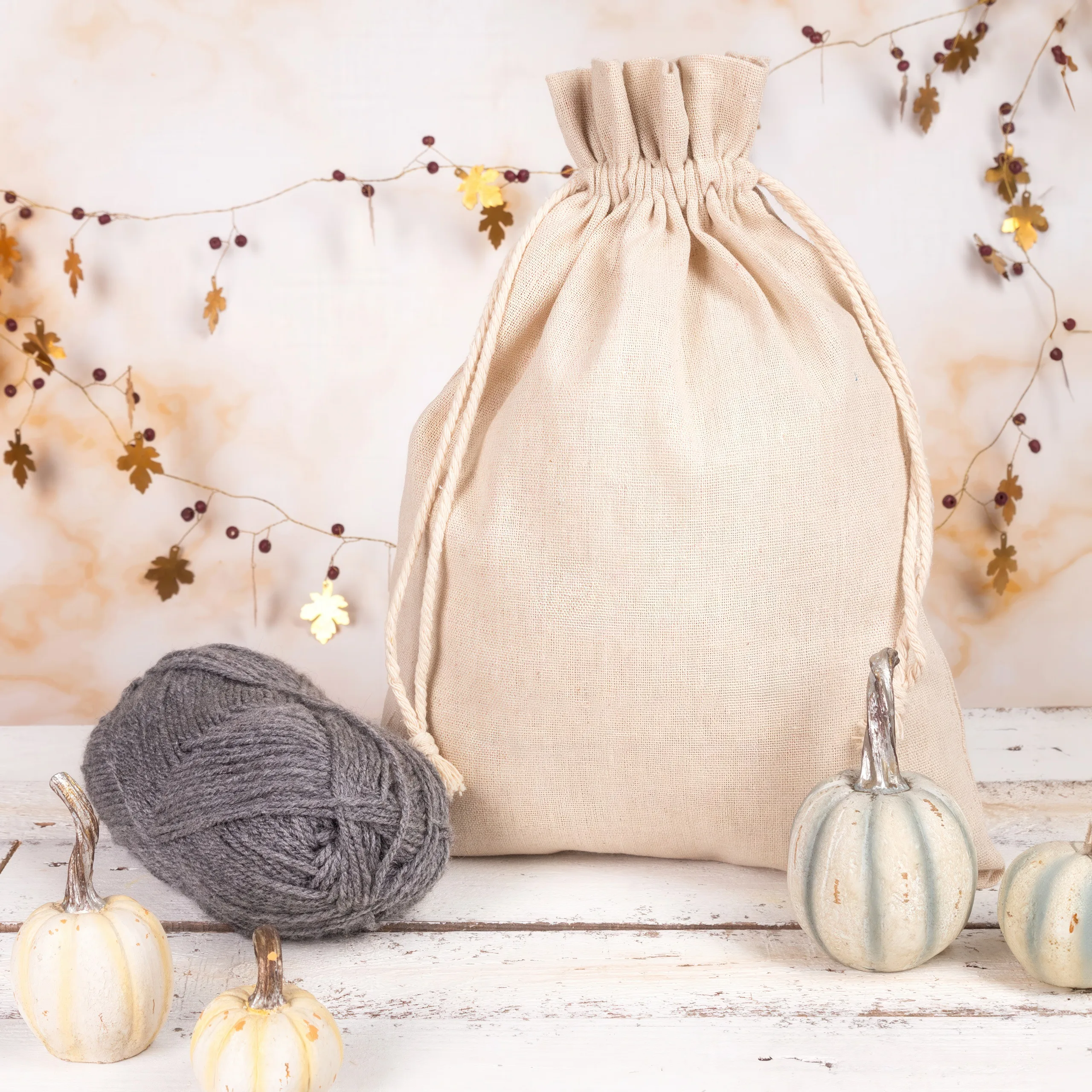 Objevte naše univerzální velké textilní pytle s dvojitou bavlněnou šňůrkou ve stahovacím lemu! Balení obsahuje 1 kus velkého pytle v barvě přírodního lnu o rozměrech 26 x 35 cm.