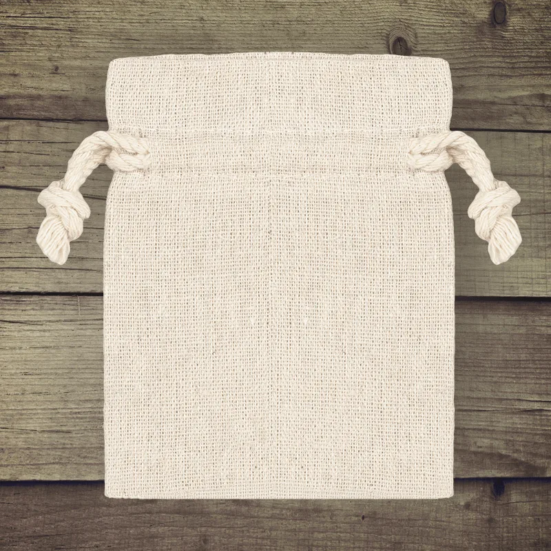 Tkanina vzniká kombinací 55-60 % bavlny a 40-45 % polyesteru. Materiál je prodyšný, příjemný na dotek a dobře drží tvar. Struktura a barva věrně připomíná přírodní len, přitom je odolnější vůči pomačkání. Pytlíky jsou vícekrát použitelné a nabízejí praktické řešení less waste pro balení drobných předmětů a dárků.