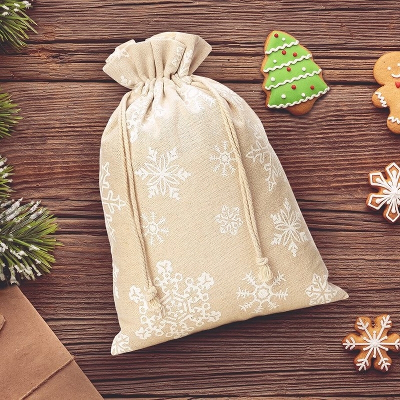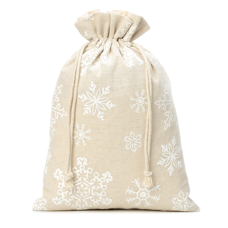 1 ks Pytel z imitace lnu s potiskem 26 x 35 cm - přírodní / sníh