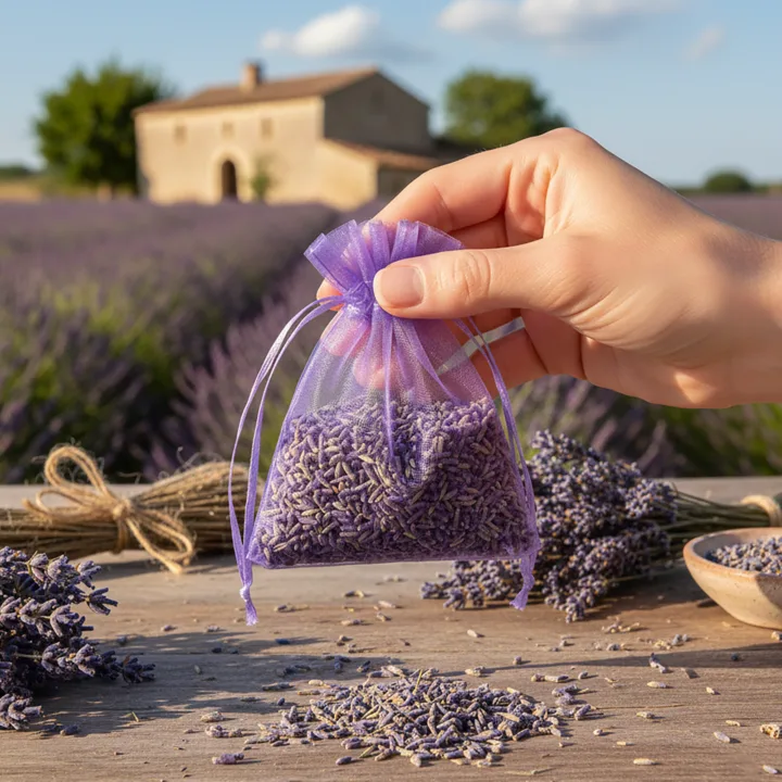 Tyto prázdné pytlíčky na levanduli z fialové organzy (9x12 cm) jsou čistým řešením pro balení sušené levandule, šperků nebo drobných dárků. Velikost vyhovuje levandulovým farmám, kosmetickým značkám i svatebním dodavatelům.