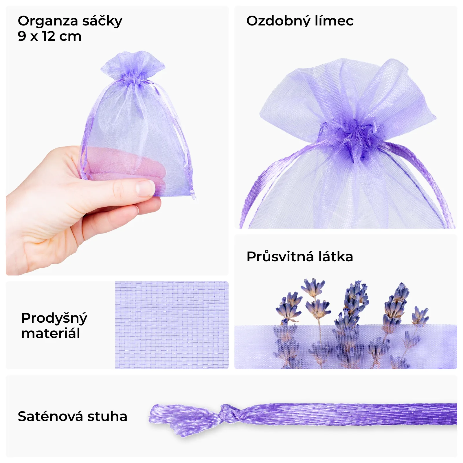 Praktické řešení pro pěstitele levandule a dárkový sortiment. Objem přibližně 12 g na pytlíček. Možnost potisku od 30 ks - logo, slogan nebo grafika ve vysoké kvalitě.