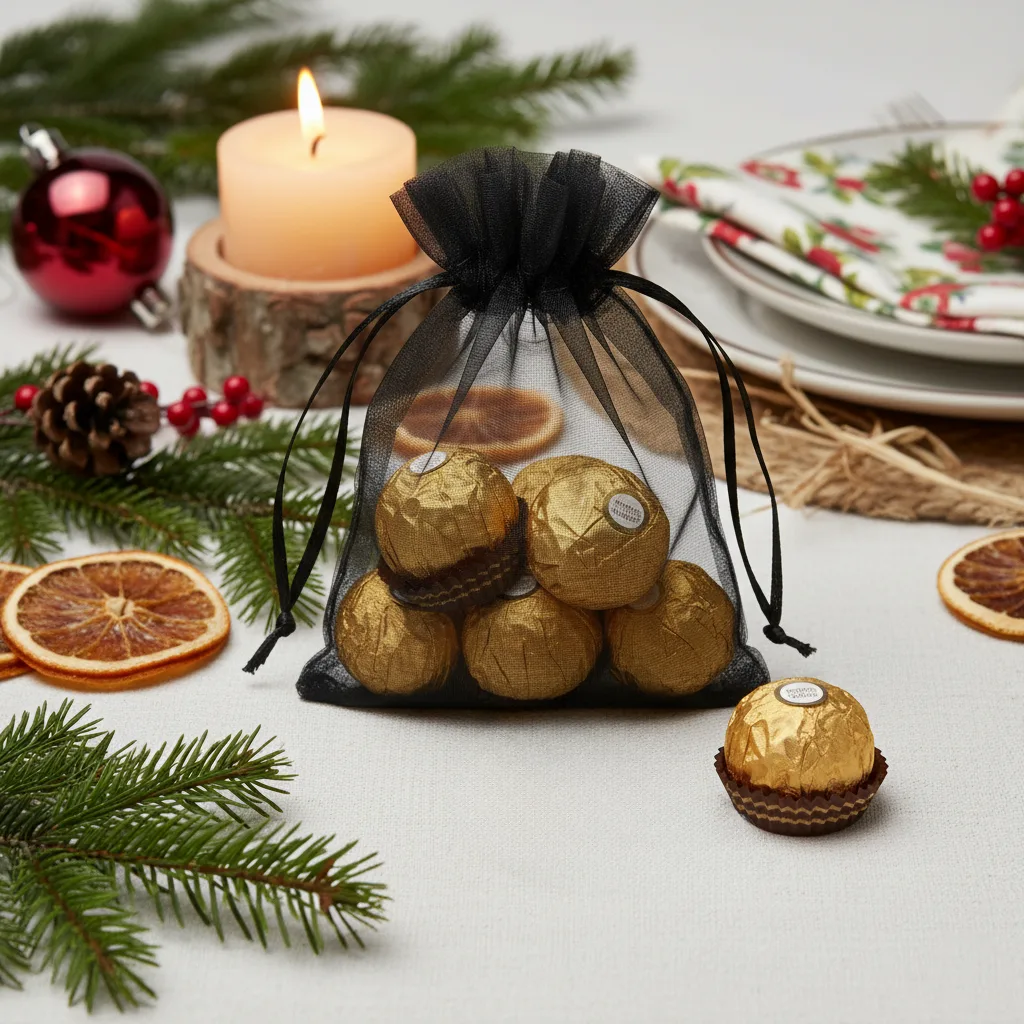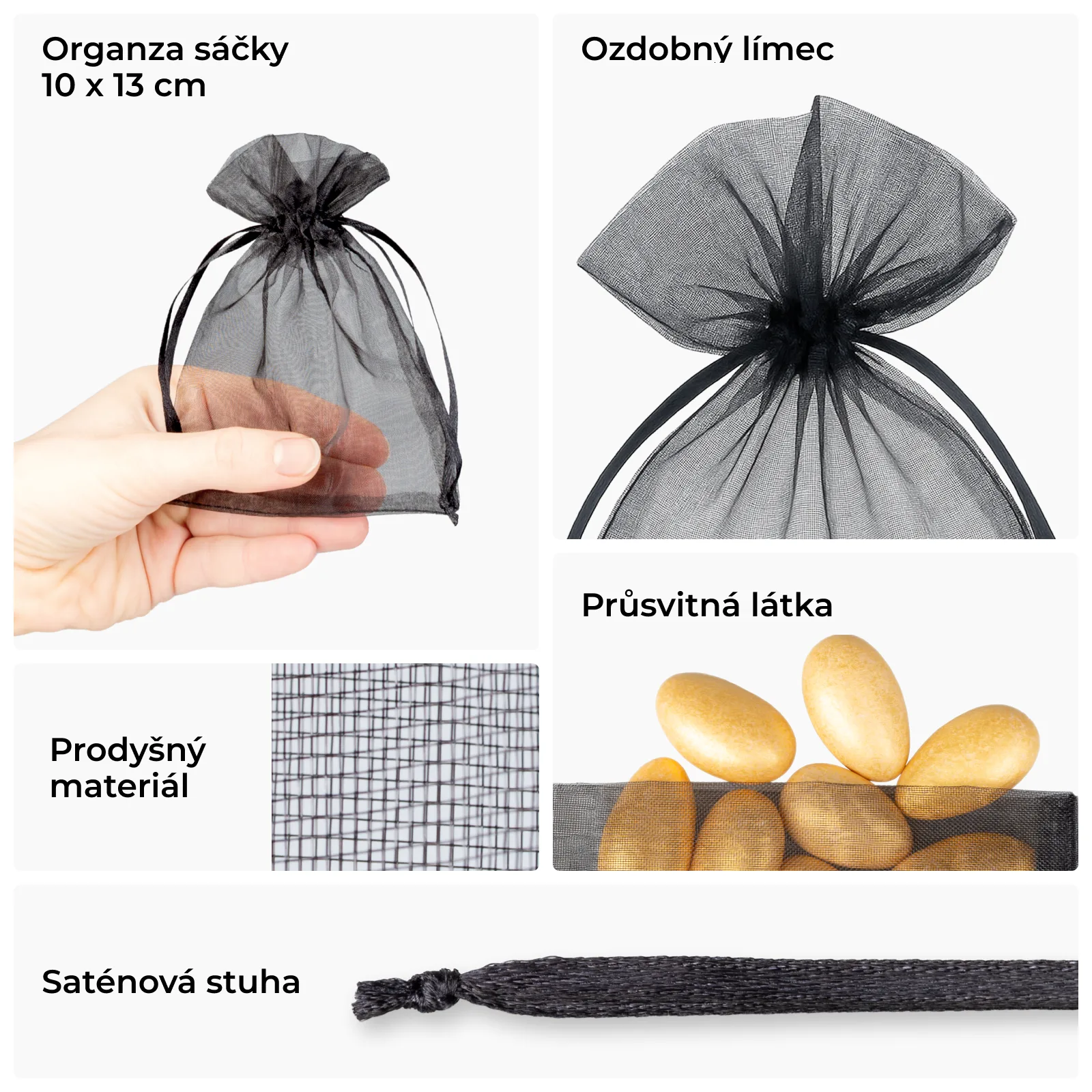 25 ks Organza sáčky 10 x 13 cm - černé