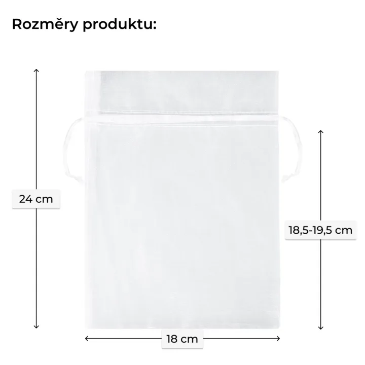 Sada obsahuje 10 sáčků z organzy, každý o rozměrech 18 x 24 cm, bílé barvy. Bílé sáčky jsou všestranným produktem, který lze použít k prezentaci různých předmětů. Jsou ideální jako průhledné balení pro šperky, ručně vyráběné mýdlo, kancelářské potřeby, suvenýry, propagační dárky nebo vzorky kosmetiky a parfémů. Díky své jemné barvě jsou bílé sáčky a pytliky z organzy často používány k přípravě drobných dárků pro hosty na svatbách nebo prvních svatých přijímání.