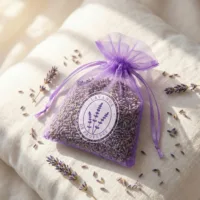 10 ks Organzové pytlíky na levanduli 9 x 12 cm, tmavě fialové s potiskem "Lavande de Provence"