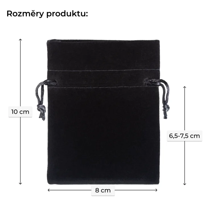 Samet je měkká tkanina s krátkým vlasem, která jemně odráží světlo a vytváří hluboký, sytý tón. Povrch je příjemný na dotek a chrání obsah před drobnými oděrkami. Černá barva dodává obalu luxusní vzhled a zvýrazňuje lesk kovů, kamenů i ručně vyráběných doplňků. Materiál dobře drží tvar a působí uhlazeně i při častém používání.