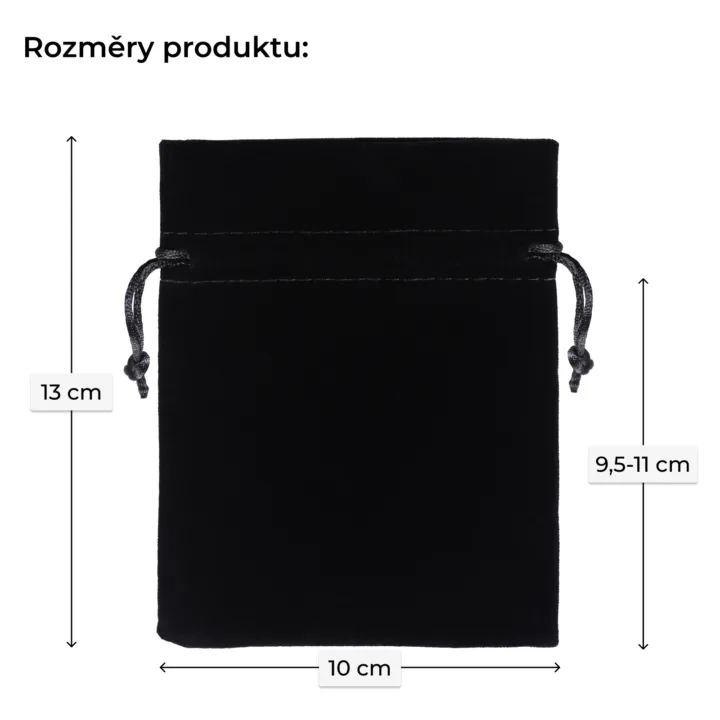 Sáčky spojují elegantní vzhled, měkký materiál a každodenní praktičnost. Černý samet zvýrazní barvu i tvar šperků a dalších malých produktů. Dvojitá stahovací šňůrka zajišťuje pohodlné používání a podporuje opakované využití.